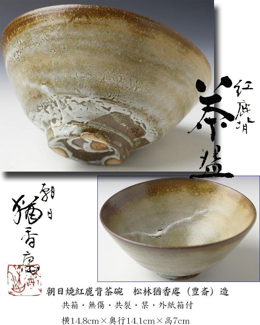 朝日焼紅鹿背茶碗 松林猶香庵(豊斎)造