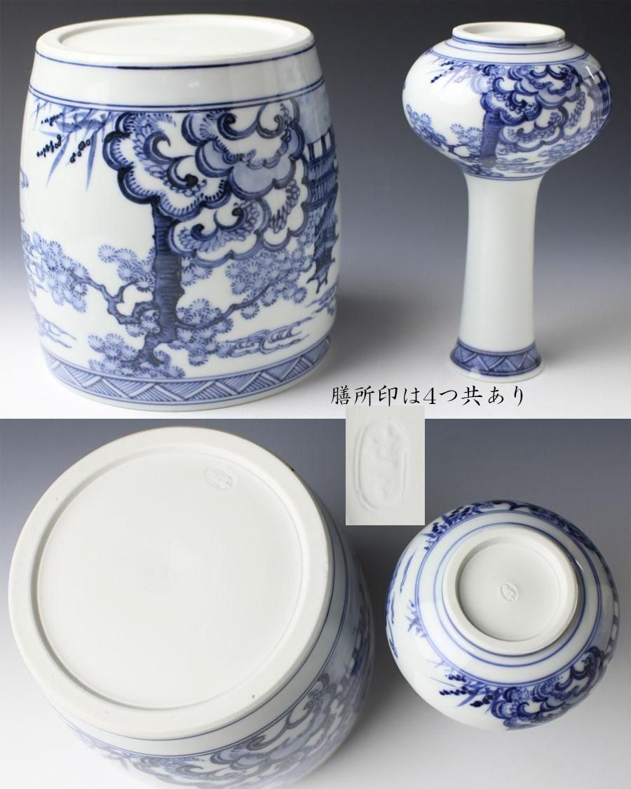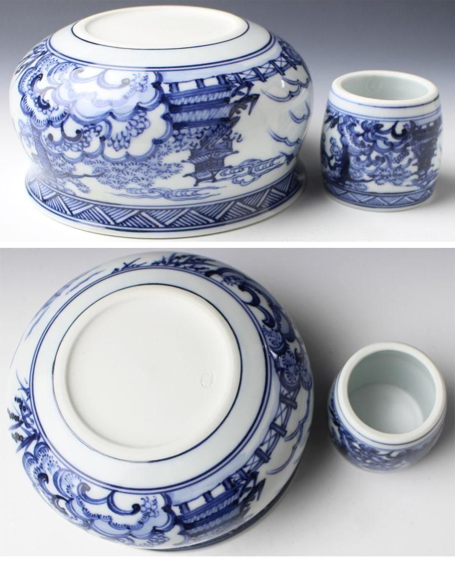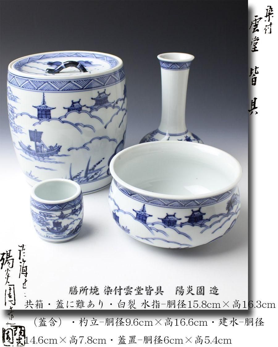 膳所焼 染付雲堂皆具 陽炎園 造