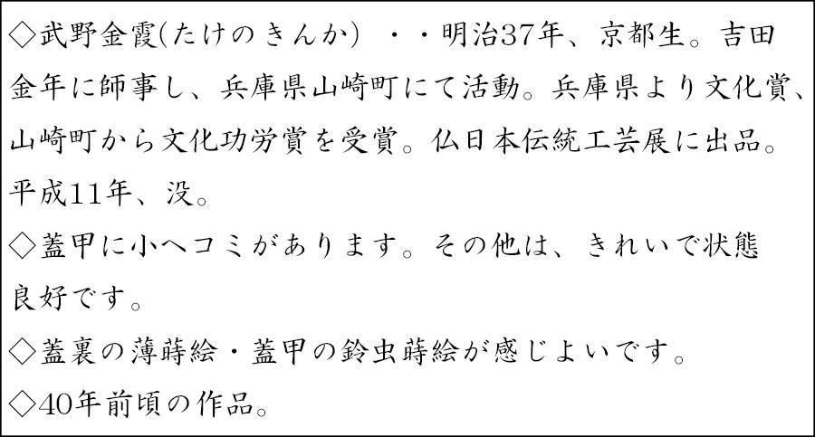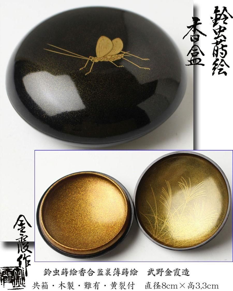 鈴虫蒔絵香合 蓋裏-薄蒔絵 武野金霞 造