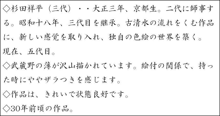 赫土地武蔵野画茶碗 清閑寺窯 三代 杉田祥平 造