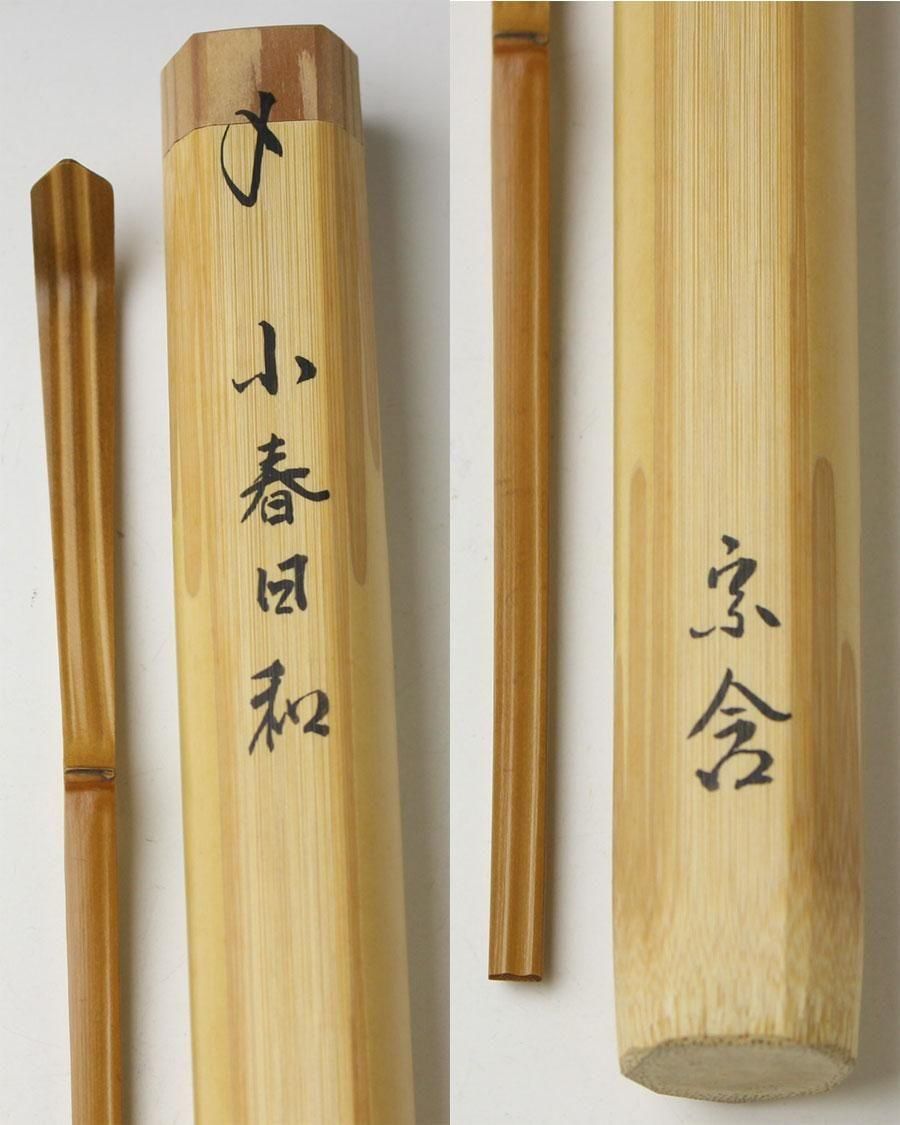 ◇自作の作品で、茶杓は兵庫県の龍野市の片しぼ竹(国の天然記念物)を以って作られています。