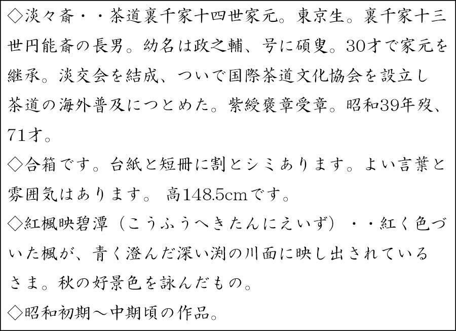「紅楓映碧潭」短冊 軸装 淡々斎筆 ※合箱