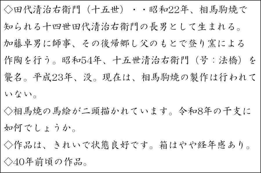 相馬駒焼 駒絵蓋置 十五世 田代清治右衛門 造 ※田代法橋