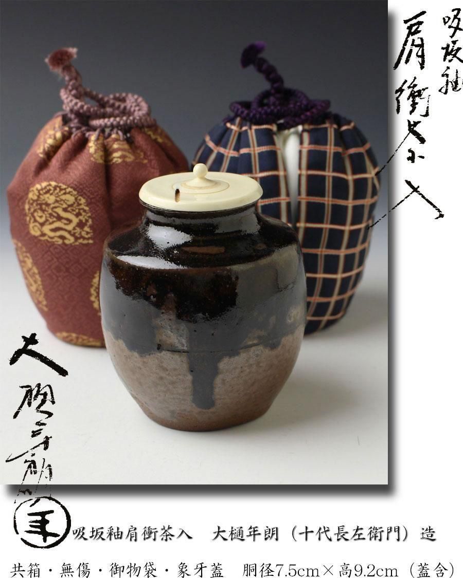 吸坂釉肩衝茶入 大樋年朗(十代長左衛門)造 替仕覆付