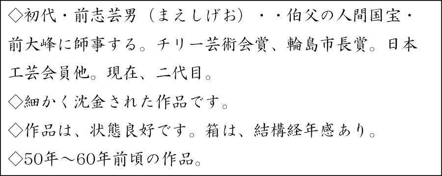 沈金桐紋様平棗 前志芸男 造 ※輪島塗