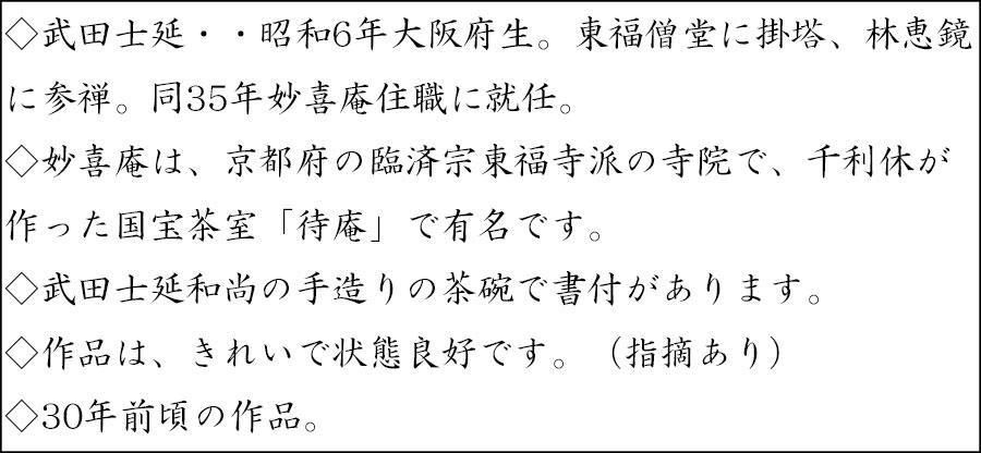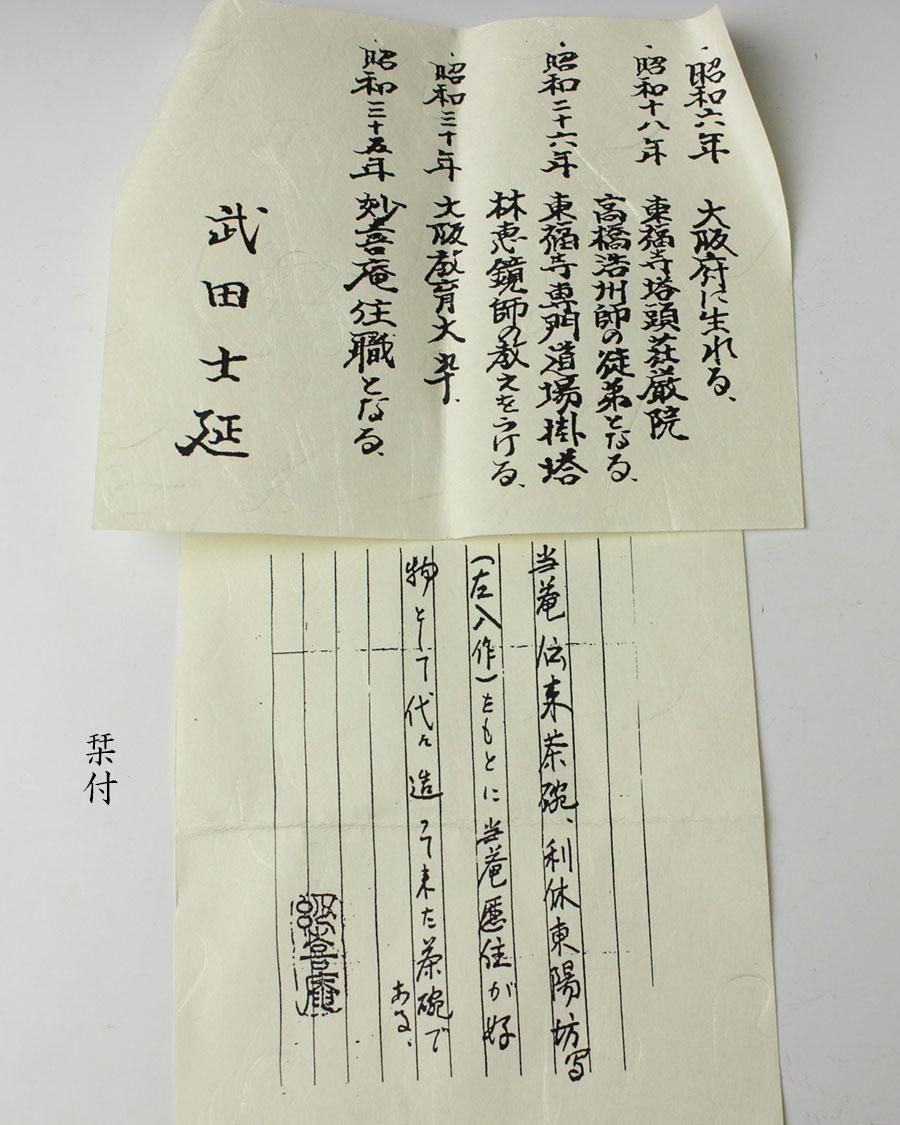 銘「瑞雲」伝来写黒茶碗 武田士延 手造り・書付 ※妙喜庵