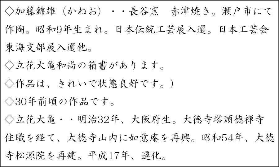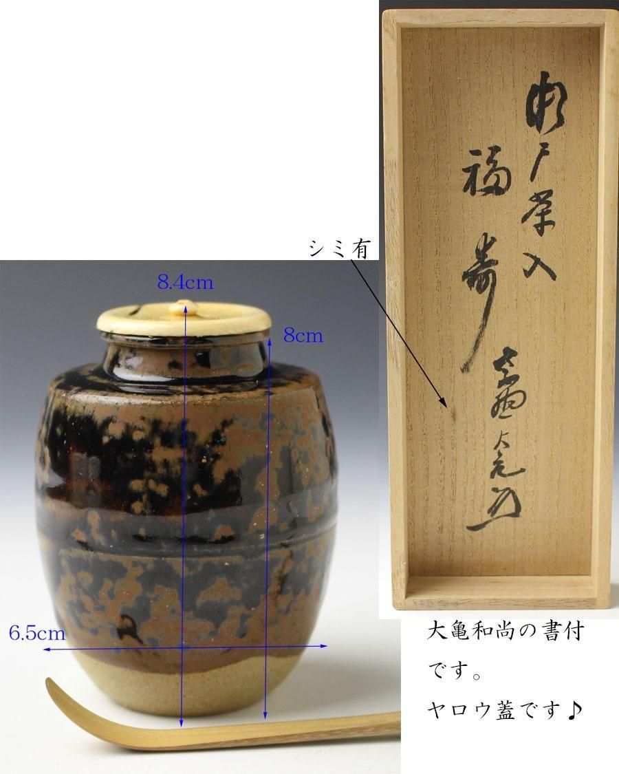 銘「福寿」瀬戸肩衝茶入 加藤錦雄 作 立花大亀書付 替仕覆付