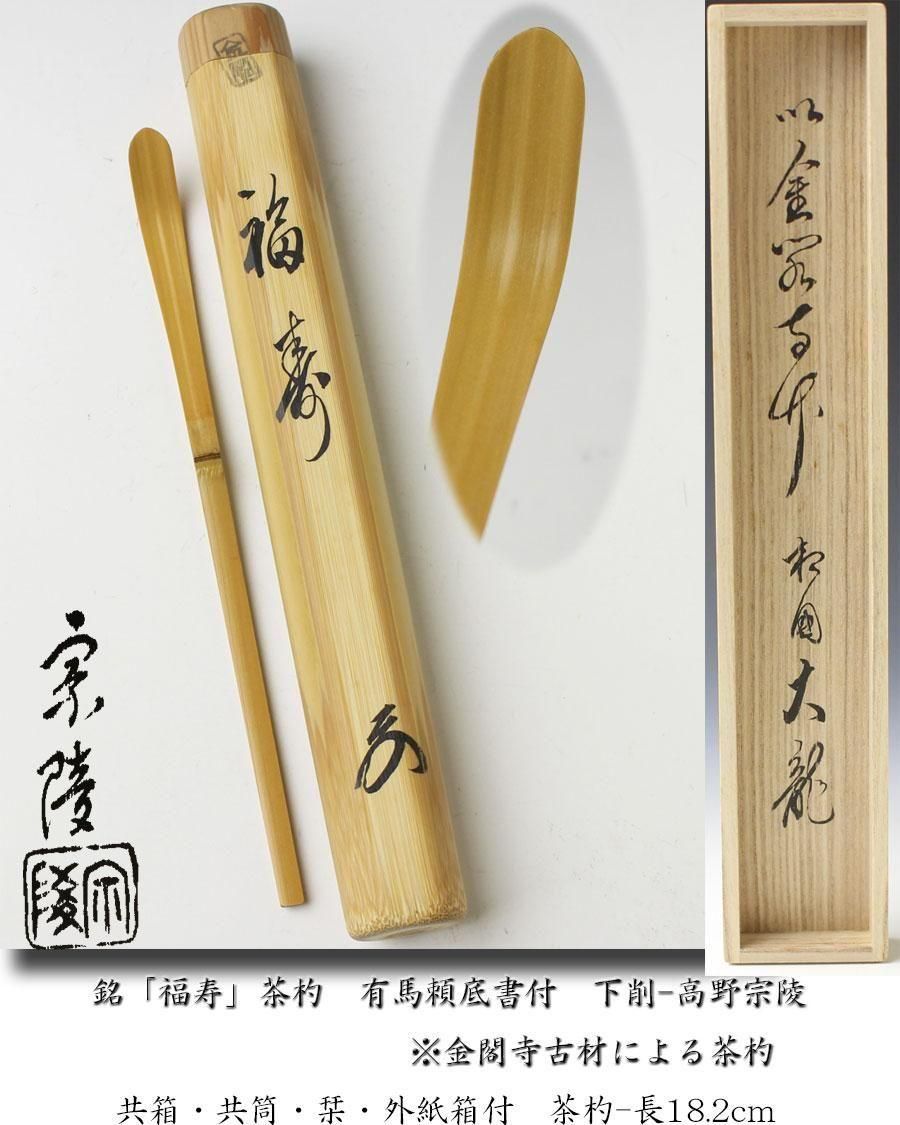 銘「福寿」茶杓 有馬頼底書付 下削-高野宗陵 ※金閣寺古材による茶杓